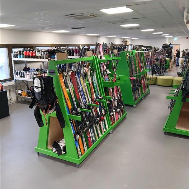 På Fritidsbanken kan man låna allt från en komplett slalomutrustning och innebandyklubbor till flytvästar och tremannatält. Alla får låna och allt är gratis – det ruckar vi aldrig på. Utrustningen är begagnad, men oftast i väldigt fint skick. Vi jobbar dessutom regelbundet med att serva utrustningen för att användarupplevelsen ska bli så bra som möjligt.